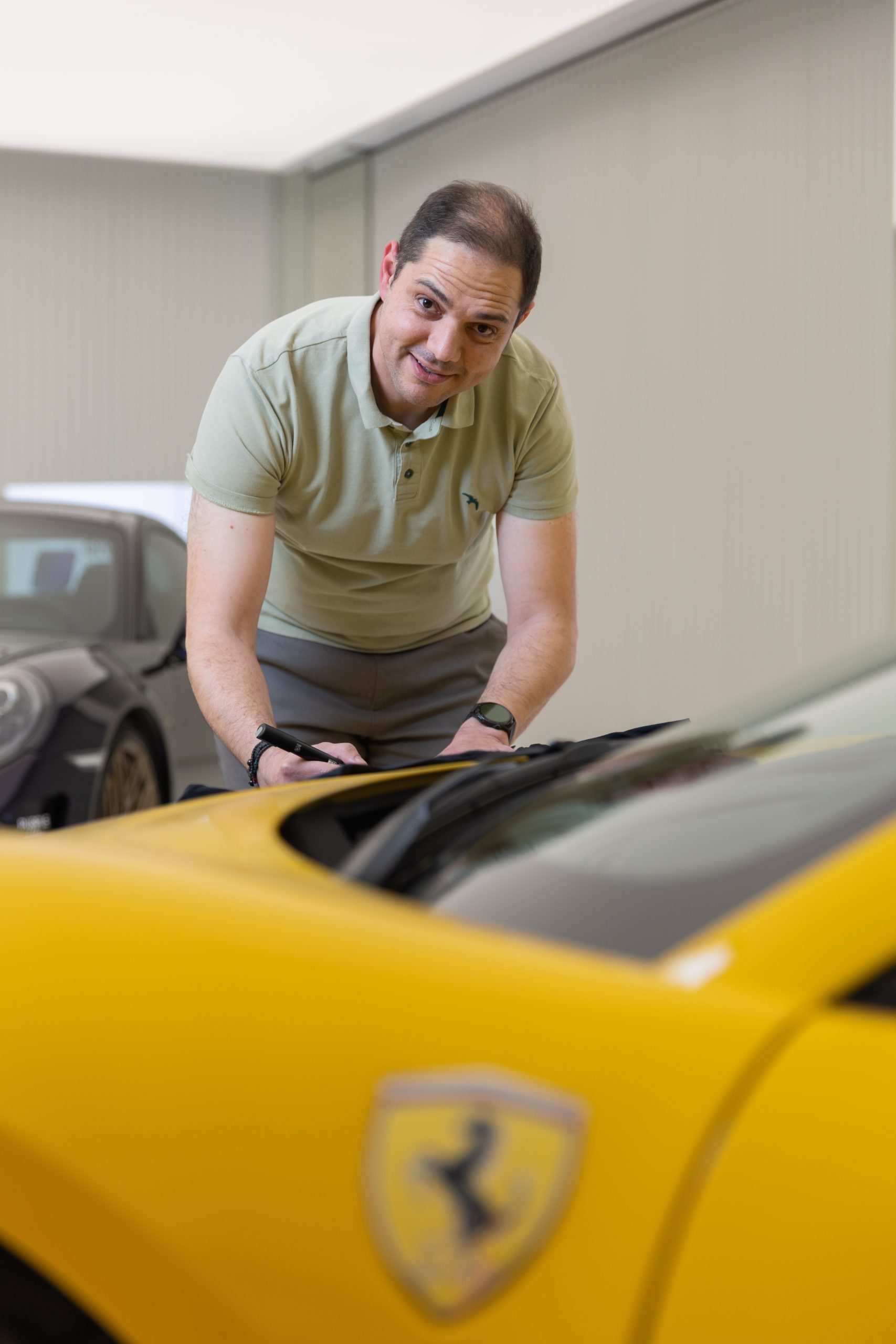 Working on an island, he notes, also presents unique challenges. The sea air can affect colours and finishes, making the choice of quality materials even more important. Among the hundreds of cars he has painted, he remembers a Jaguar that stood out as one of his most special projects.