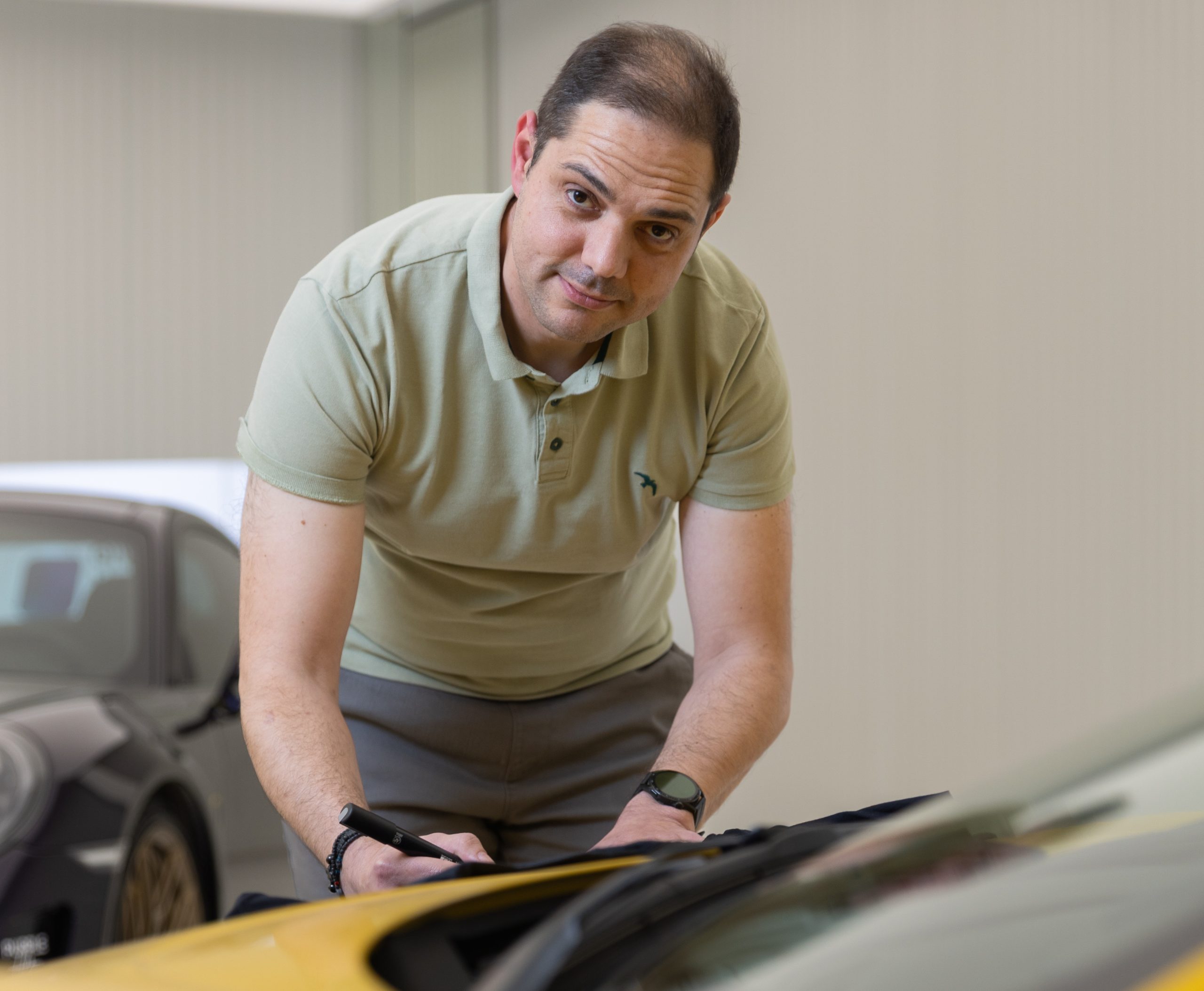 Throughout the conversation, he shares his thoughts on the challenges and beauty of his profession. He explains that three-layer coatings and yellow shades are among the most demanding applications, while revealing one of his personal secrets: even the masking process plays a key role in achieving a flawless finish.